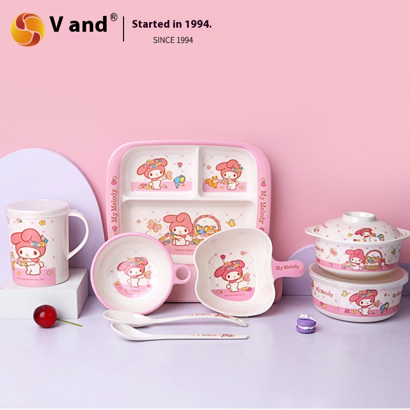 Sanrio My Melody Children's Tableware Melamine Plate Imitation Porcelain Cute Food Bowl Cartoon Dinner Plate Water Cup