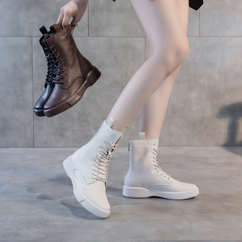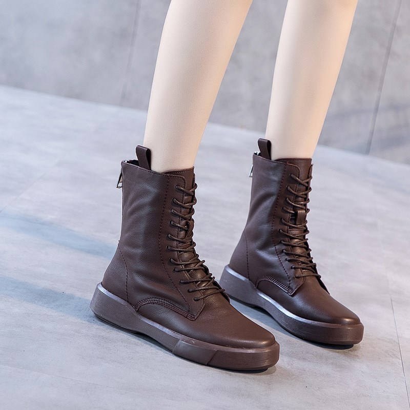 Geshi Produced Classic Genuine Leather Short Boots Women's Flat Bottom Women's Boots Martin Boots Women's Thick Bottom