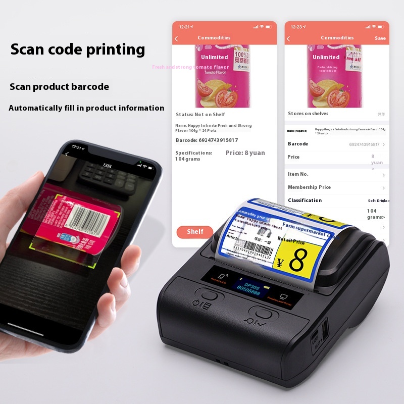 Detong D P30 S Bluetooth Thermal Label Printer Portable Commodity Supermarket Barcode Self-adhesive Handheld Label Machine