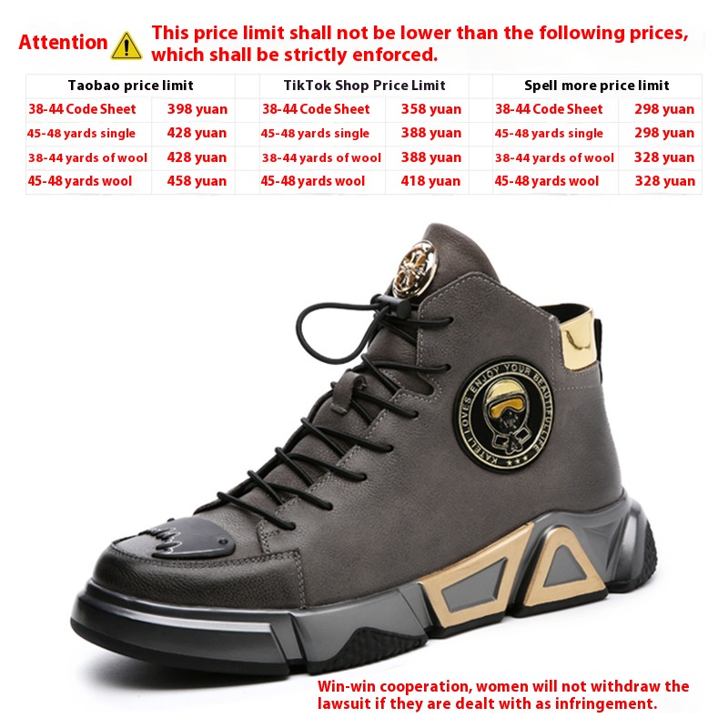 Plus Size Men's Shoes48 High-top Shoes Men's Shoes Genuine Leather Mart Men's High-top Autumn And Winter Fashionable Leather Boots With Thick Sole