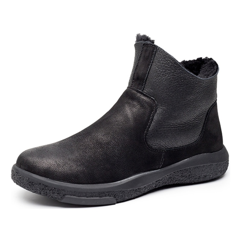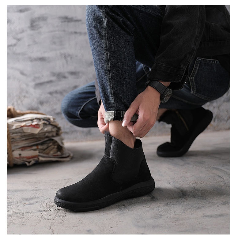 Thick-soled Snow Boots Men's Winter Thick Velvet Warm Leather Cotton Shoes296-2 Martin Boots Side Zipper
