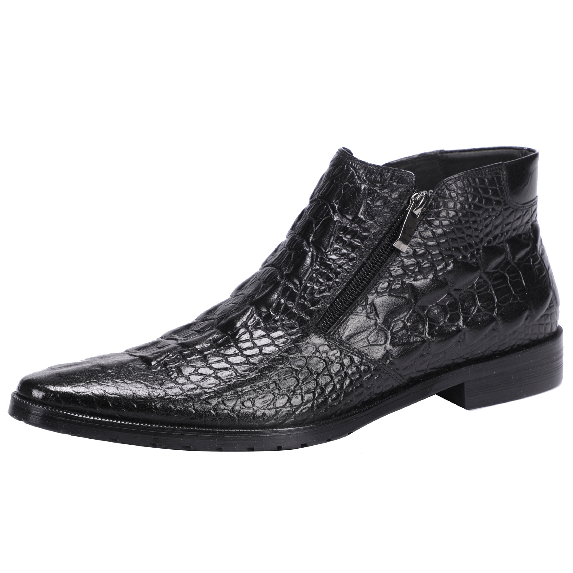 Cowhide Ankle Boots Men's High Top Leather Shoes Crocodile Pattern Zipper Warm Business Formal Martin Boots Foreign Trade Genuine Leather Boots