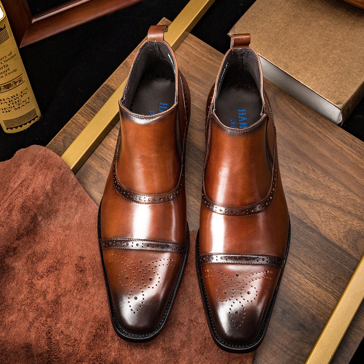 【】Top Layer Cowhide Men's Martin Boots Business Men's Boots Short Business Men's Shoes One Piece Drop Shipping