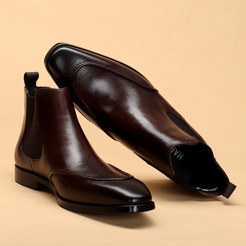 Men's Autumn And Winter European Version Of Martin Boots Men's High-top Shoes Cowhide Pointed Chelsea Men's Bootsy Shoes One Piece Drop Shipping