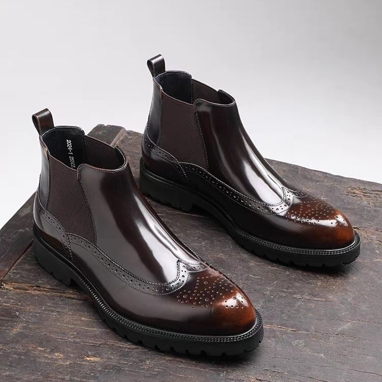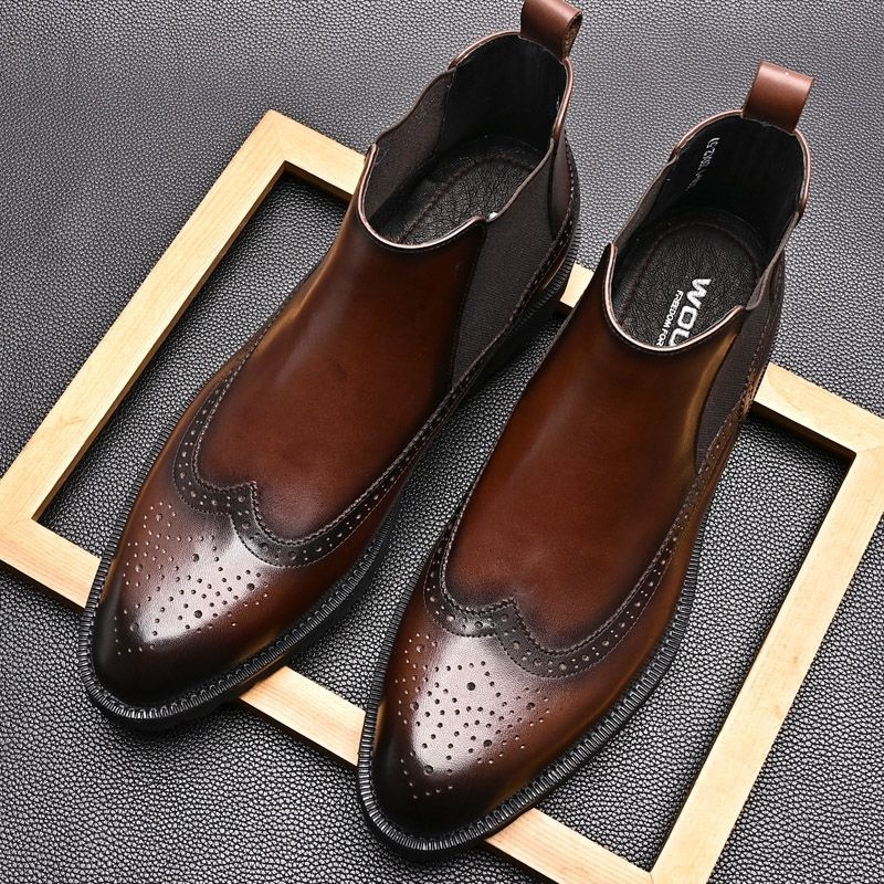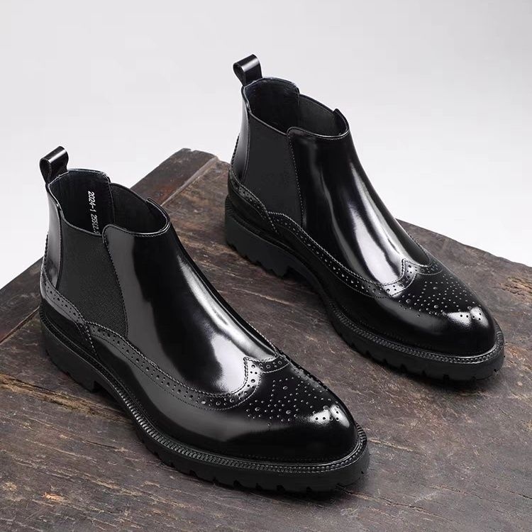 British Style Leather Boots Patent Leather Men's Boots Winter Chelsea Boots Brogue High Top Leather Shoes Men's Martin Boots Men'sy Short Boots