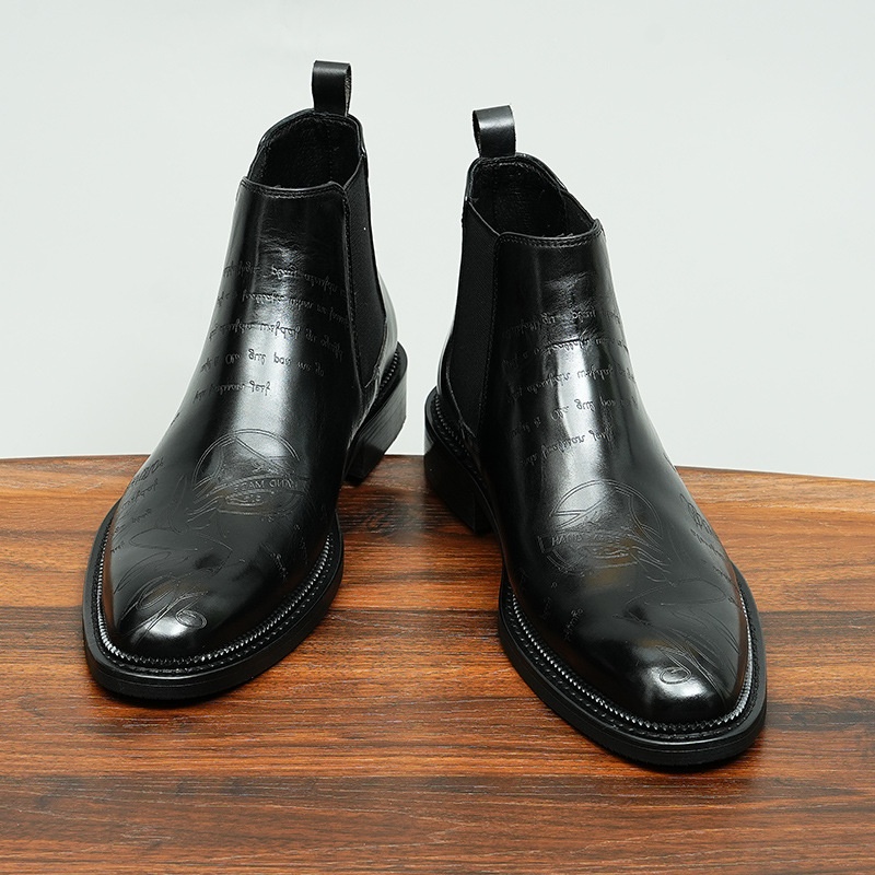 High-top Leather Shoes For Men In Winter With Velvet Genuine Leather British Carved Business Casual Chelsea Boots Pointed Warm Martin Boots