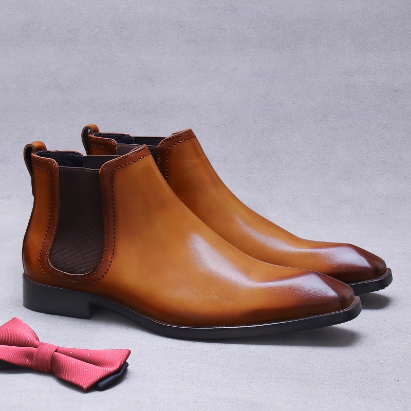 Chelsea Boots Men's Genuine Leather British Pointed Business Formal Martin Bootsy Retro Carved Winter High Top Leather Shoes