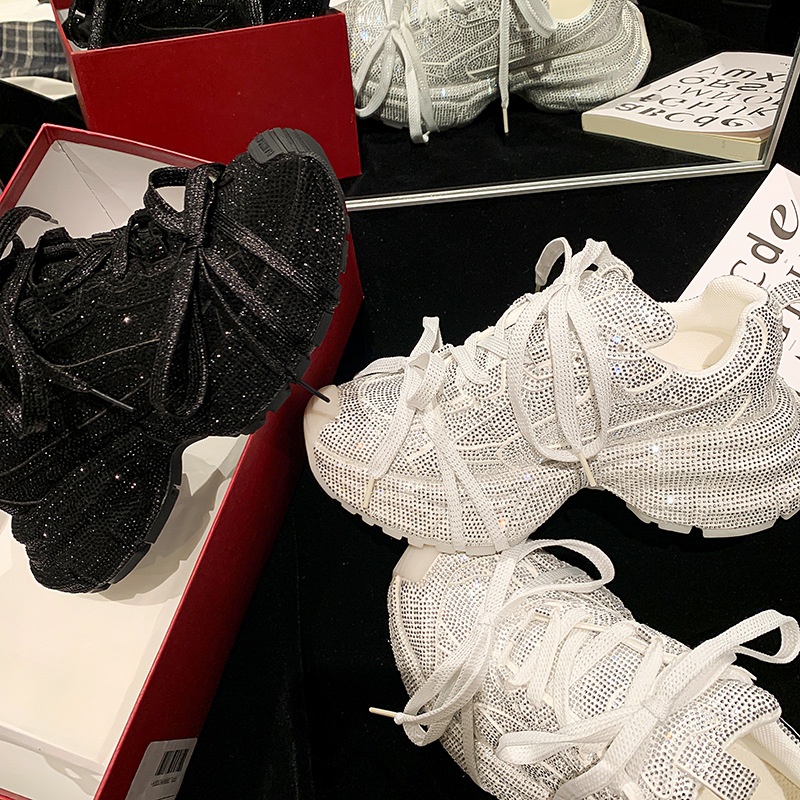 Too Cool~Full Diamond Dad Shoes Spring Network Celebrity Platform High Heel Lace-up Thick Bottom Sports Casual Shoes For Women