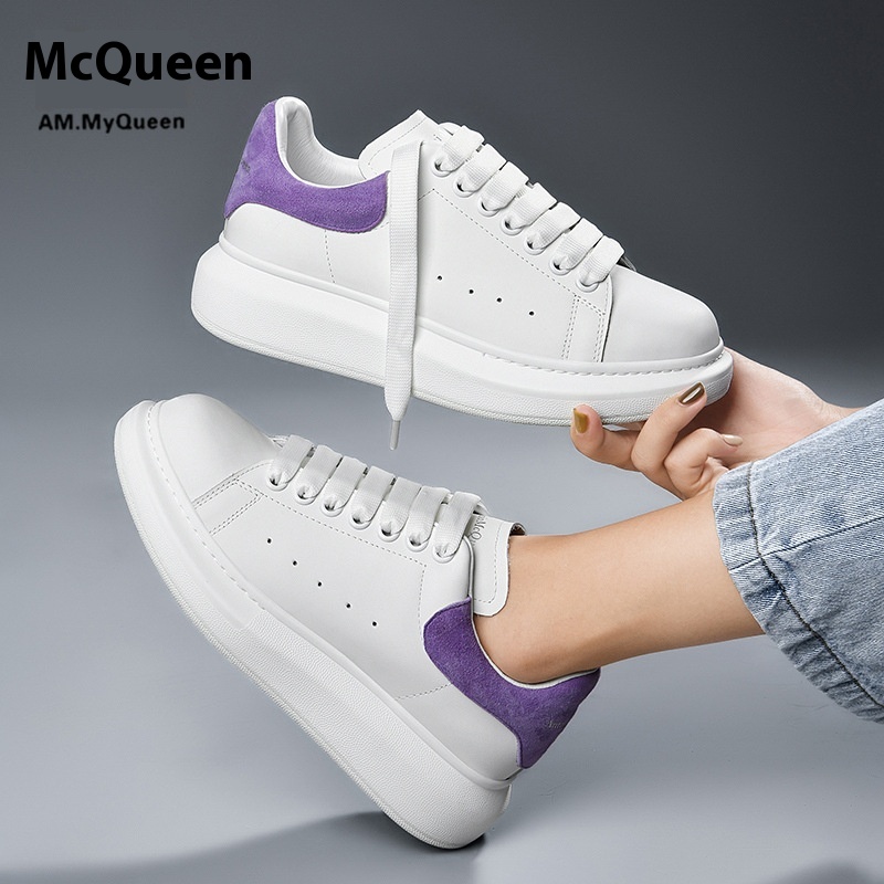 White Shoes For Women White Shoes Genuine Leather Platform Thick Sole Heightened Taro Purple All-match Sneakers