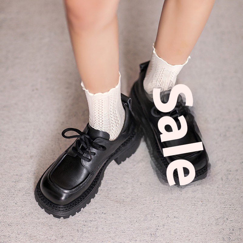 Thick-soled Loafers For Women Cowhide Retro British Style Small Leather Shoes Thick-soled Thick-heeled Casual Lace-up Shoes