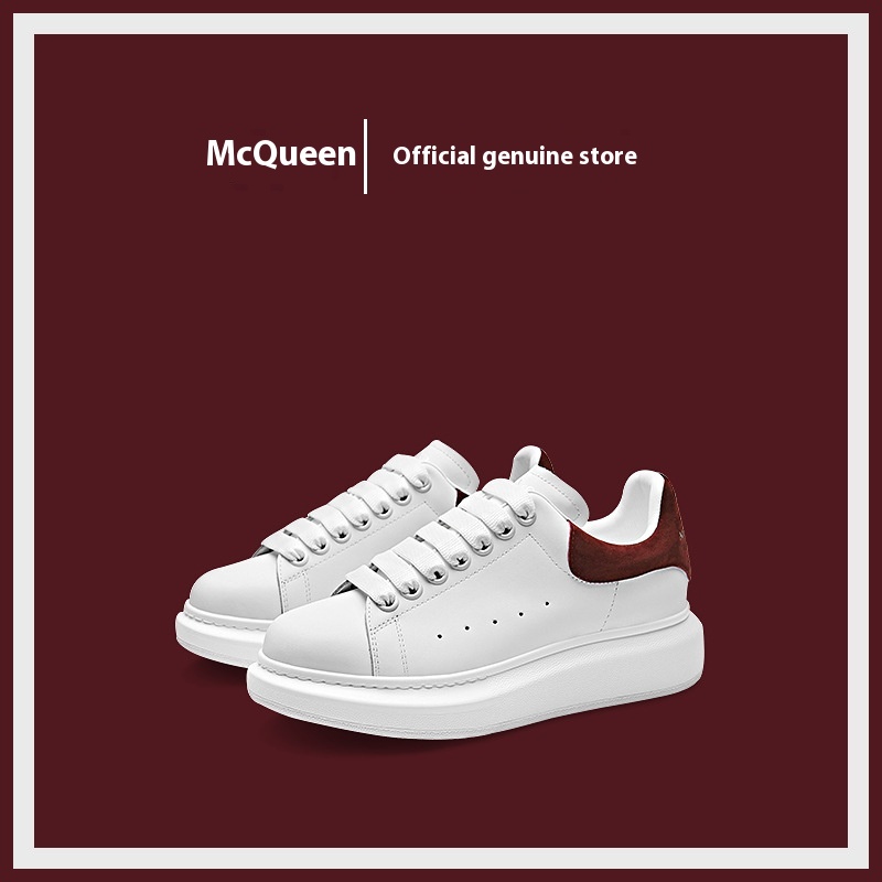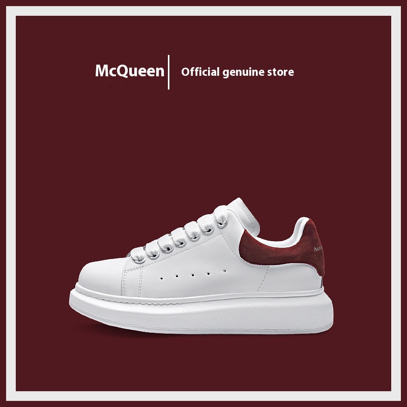 Mc Queen White Shoes For Women Spring Versatile Wine Red Tail Niche Design Women's Shoes Thick-soled Sports Shoes