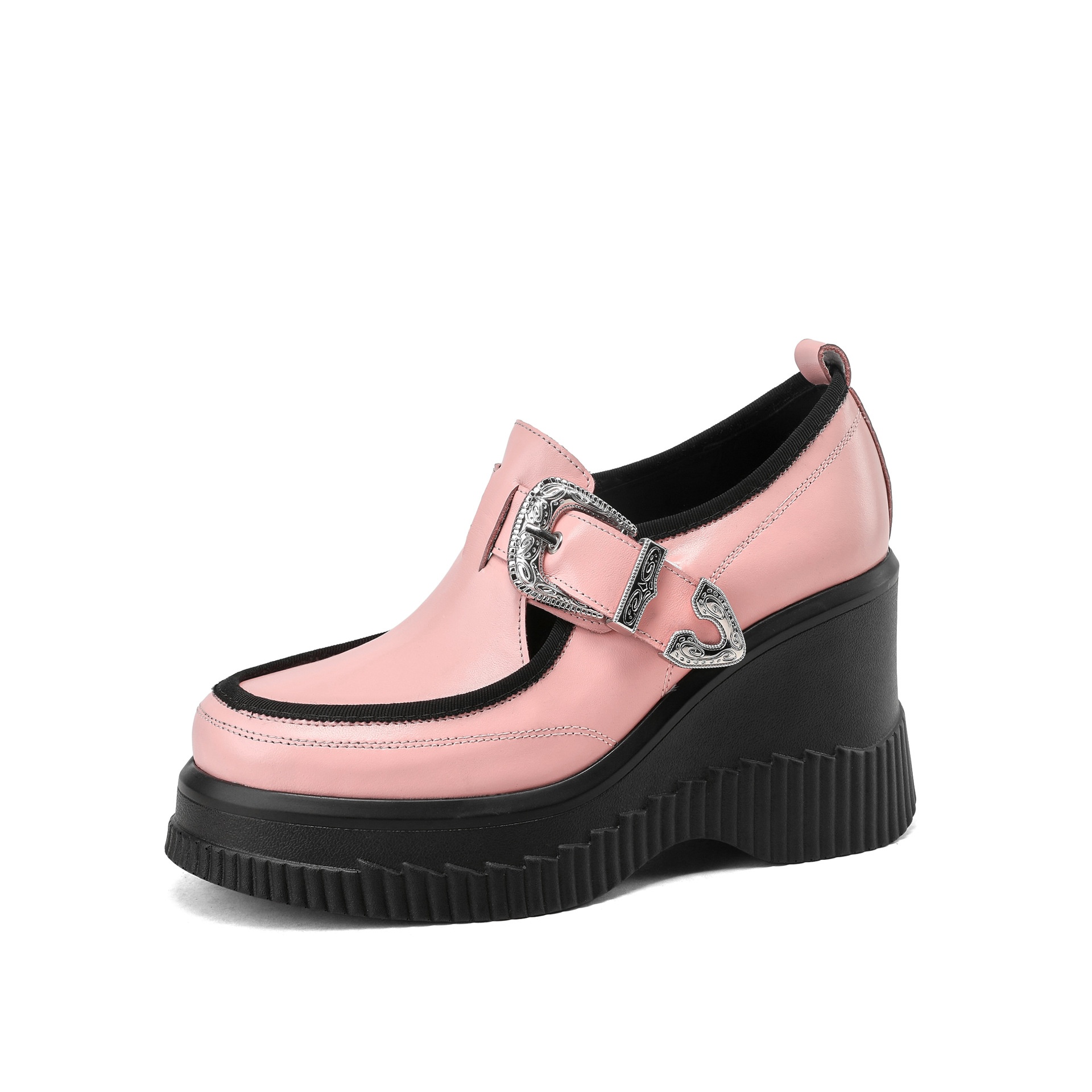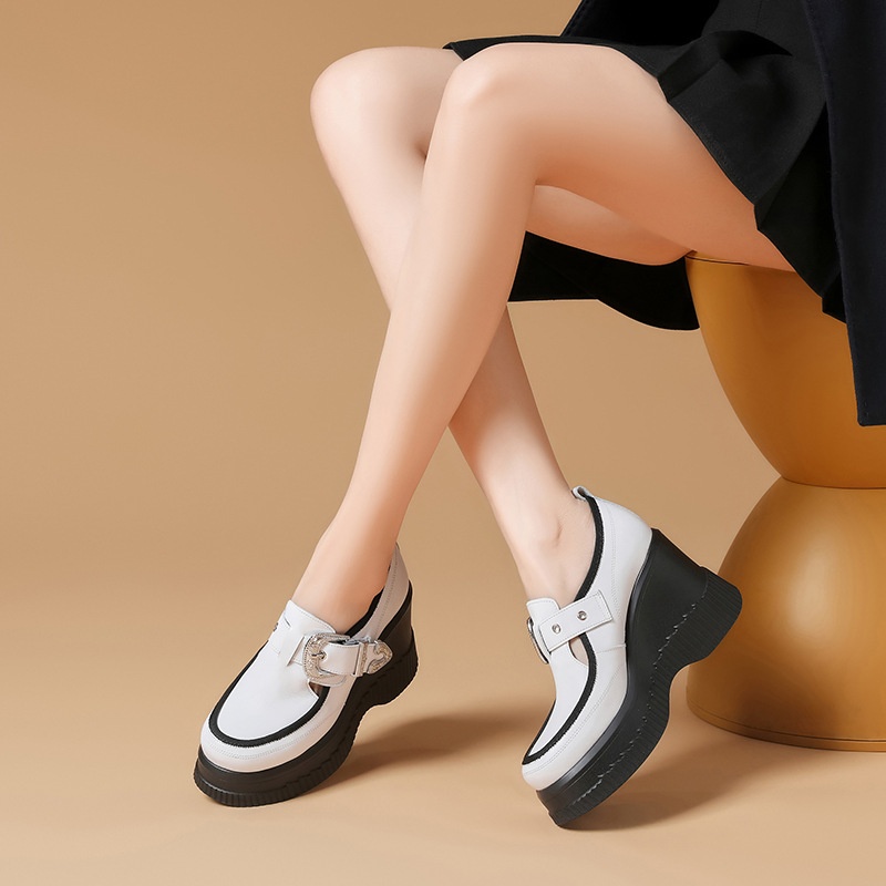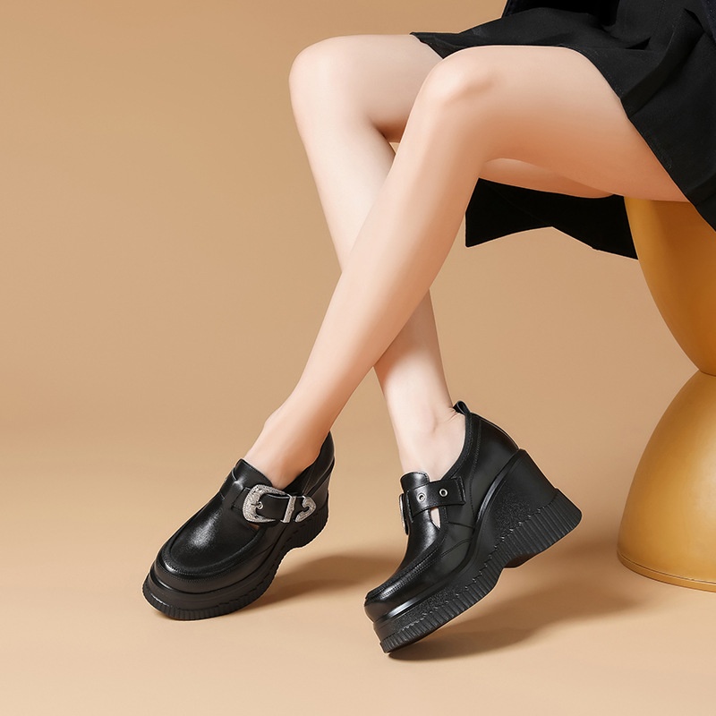 10cm Wedge Heel Thick-soled Single Shoes For Women Genuine Leather Lazy Platform Shoes Spring Small Size Super High Heel Leather Shoes