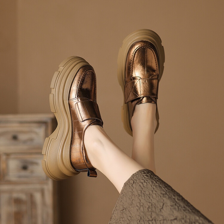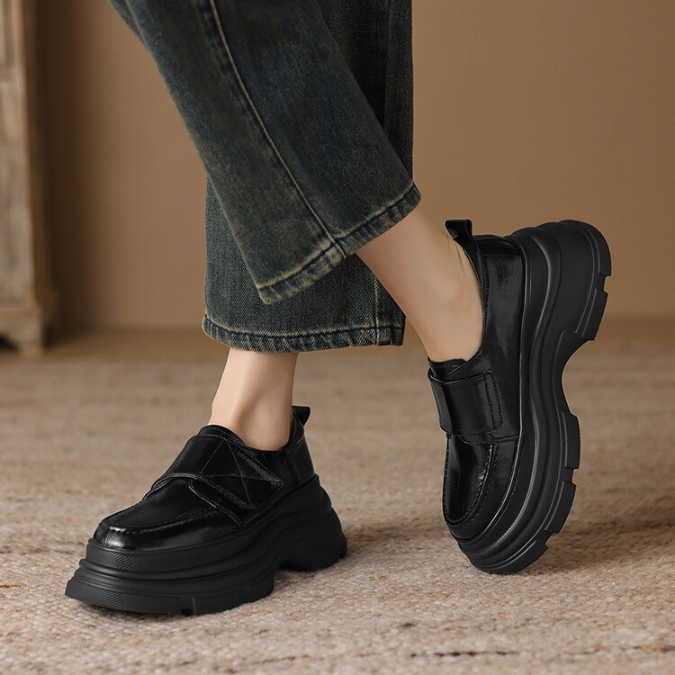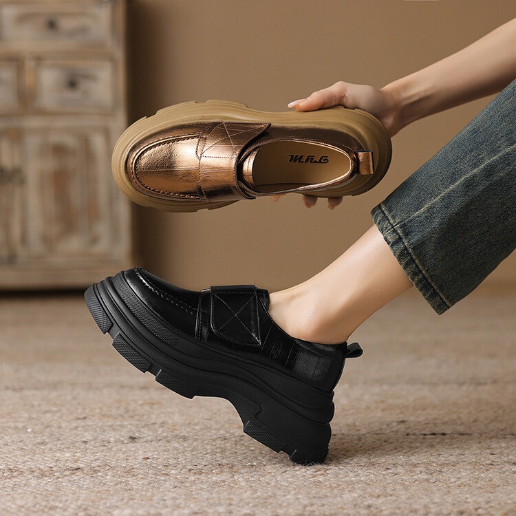 Spring And Autumn Korean Version Of Wedge Heel Velcro Thick-soled Women's Shoes Deep Mouth Casual Slim Platform Daddy Loafers Summer