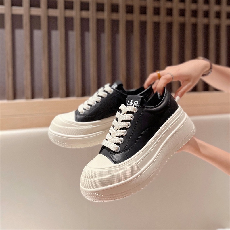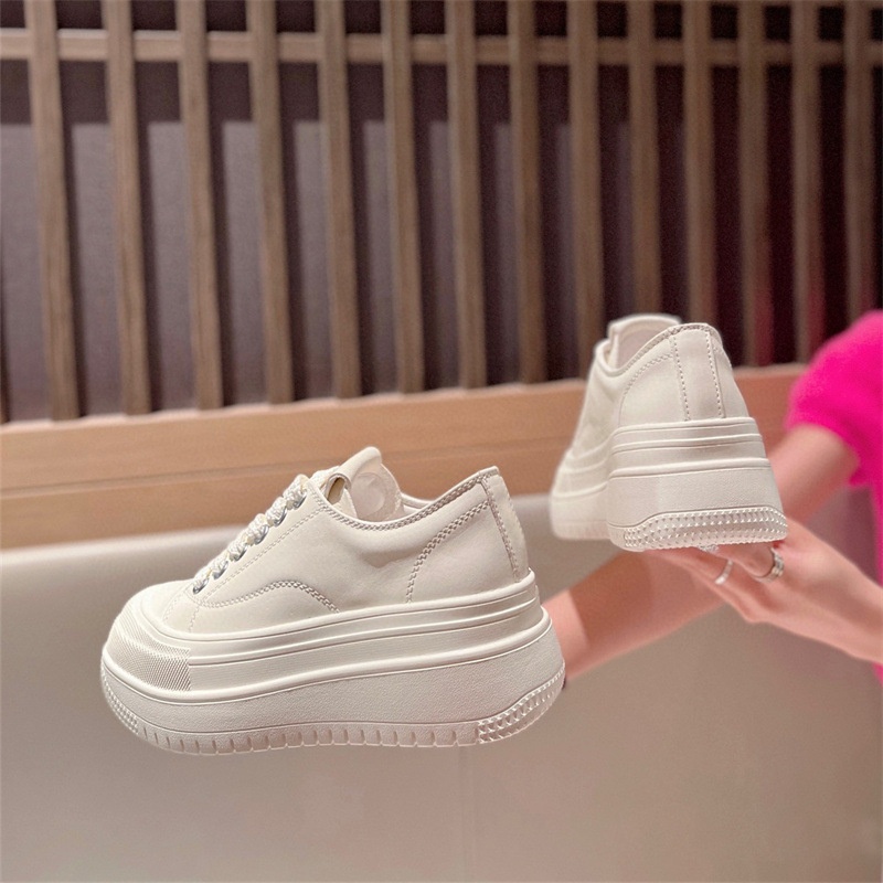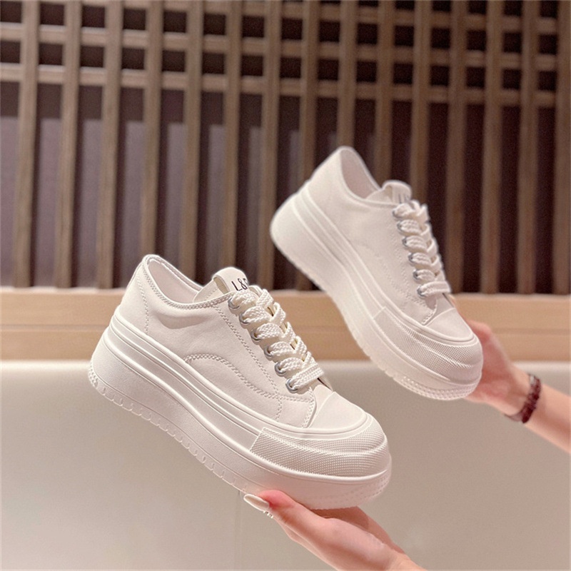 Genuine Leather Thick-soled Height-enhancing White Shoes For Women Spring Korean Styley Lightweight Fashion Casual Sneakers