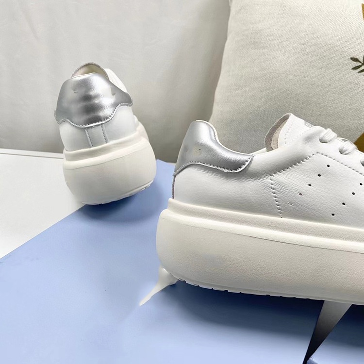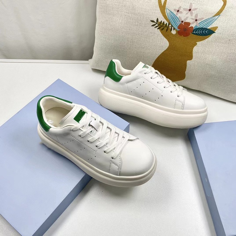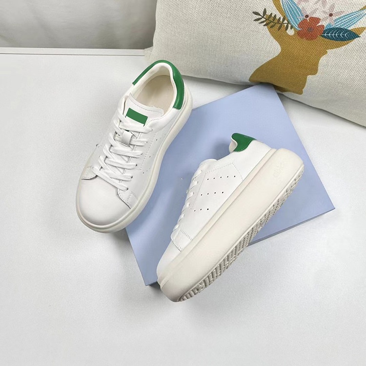 Genuine Leather White Shoes Thick Sole Heightening All-match Sneakers For Women Spring And Autumn Lace-up Casual Sports Shoes