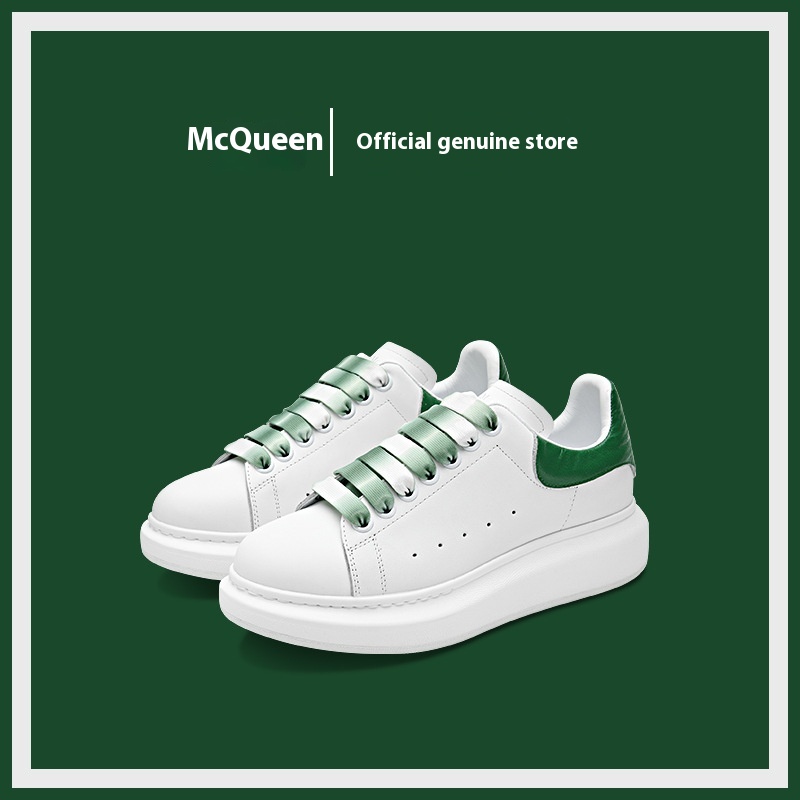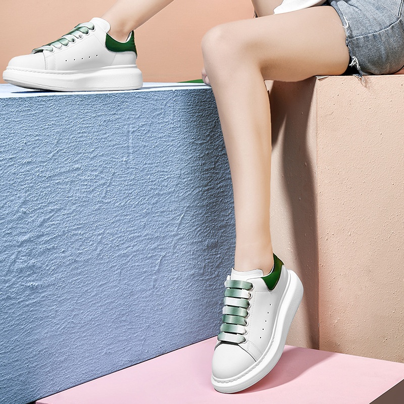 Spring Gradient Mc Queen White Shoes Thick Sole Genuine Leather Platform Heel Niche Design Women's Shoes Casual Shoes