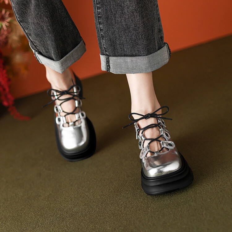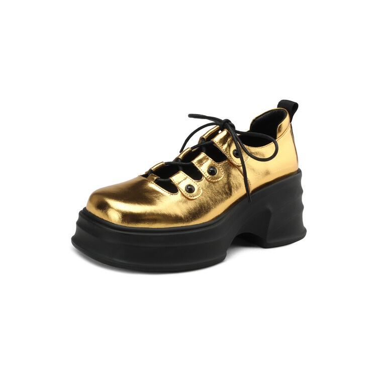 Bi备厚底单鞋秋夏头层牛皮一脚蹬懒人鞋松糕金币乐福鞋女