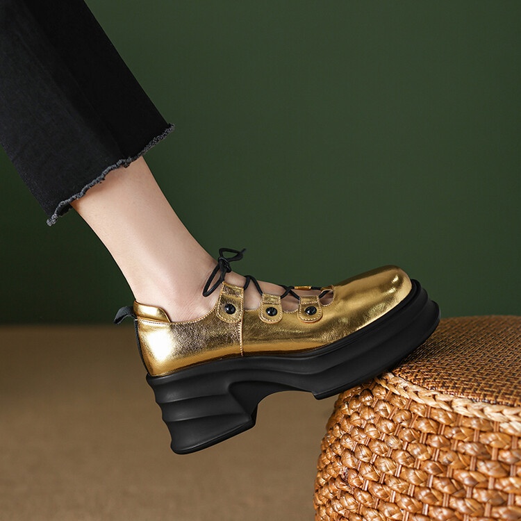 ~Slim~Spring And Summer Roman Style Straps Hollow Thick-soled Wedge Heels Women's Single Shoes High Heels Fashion Platform Shoes Gold And Silver