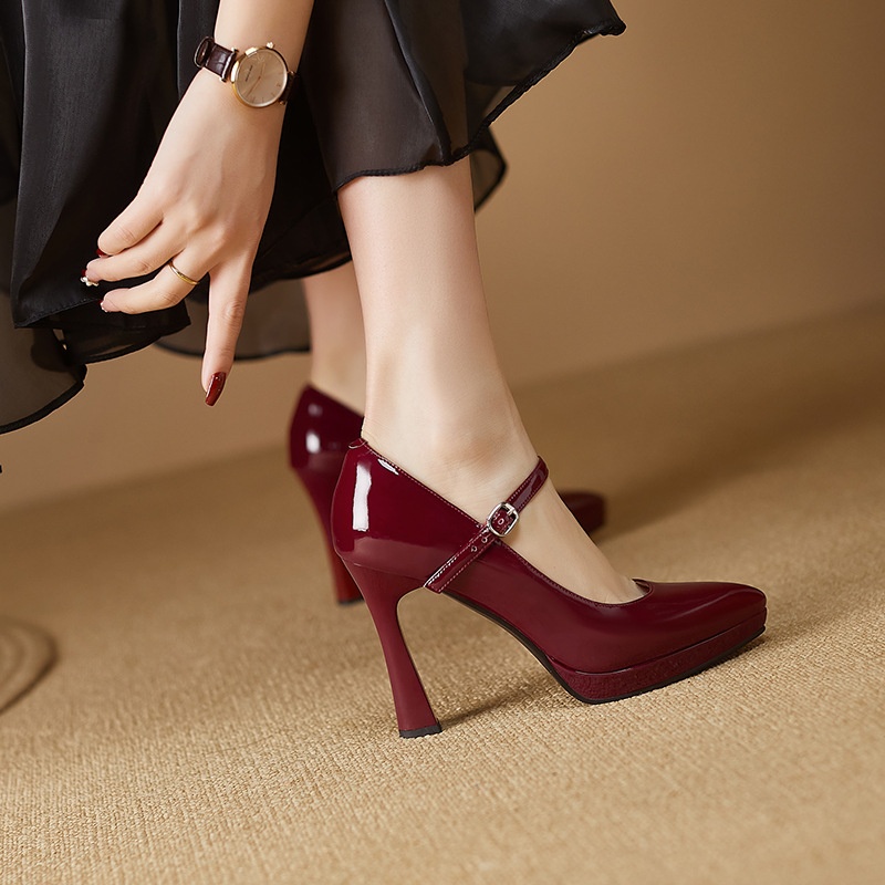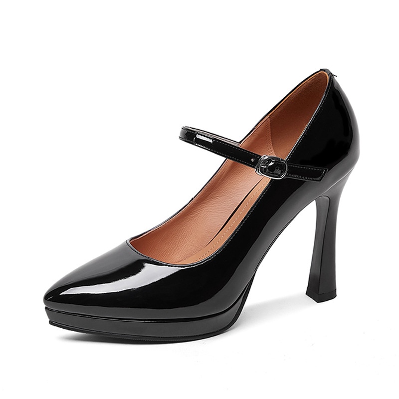 Spring And Autumn Women's Shoes Pointed Toe Stiletto High Heels Platform Buckle Sexy Fashion Shoes Cow Patent Leather Single Shoes For Women