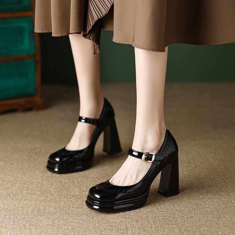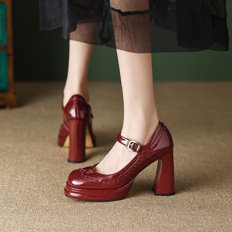 Retro Brogue High Heels Mary Jane Single Shoes Women Spring Women's Shoes Foreign Trade Fashion Women's Shoes