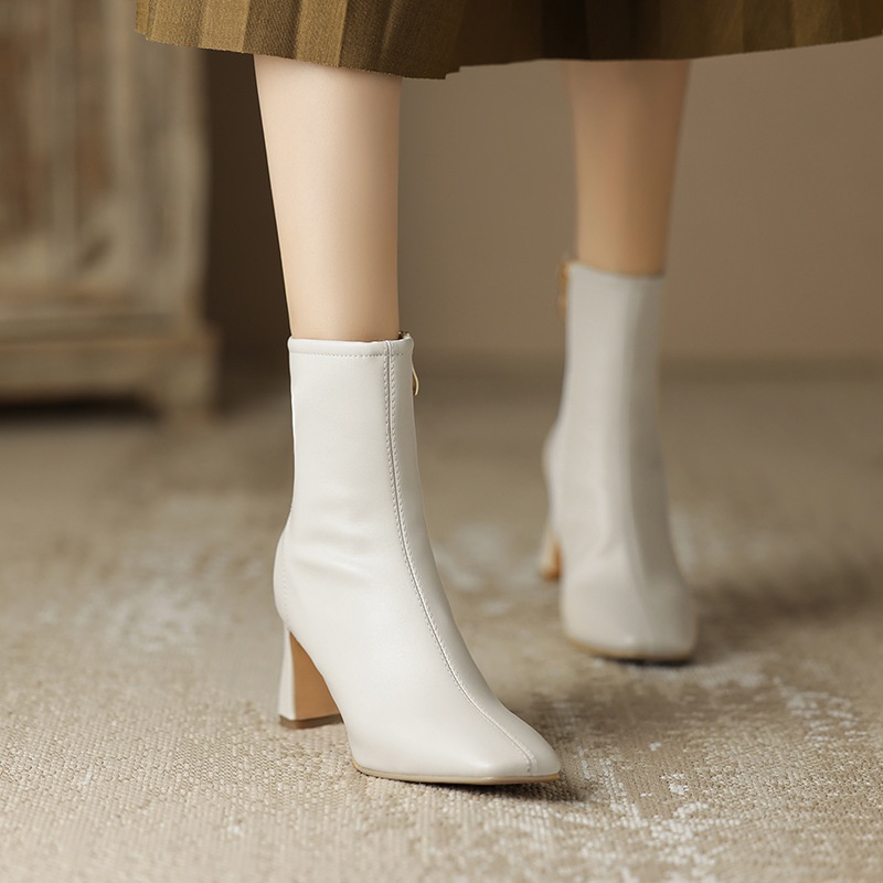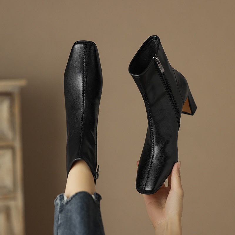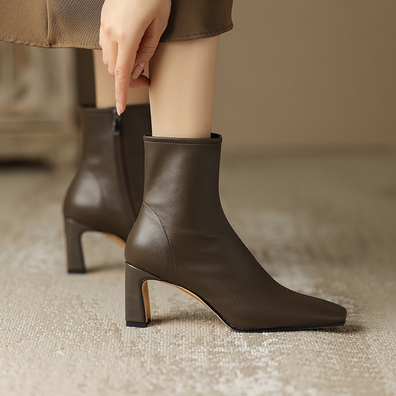 Autumn And Winter Square Toe Martin Boots Women's High Heel Short Boots Square Heel Single Boots Retro Brown Leather Women's Boots
