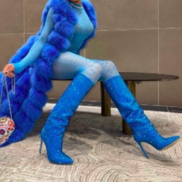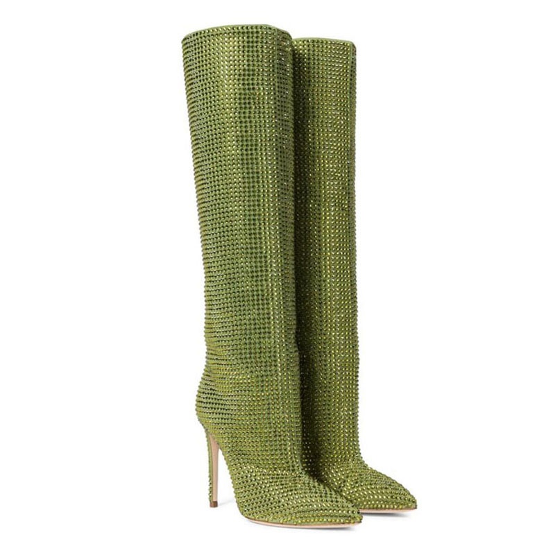 Starry Rhinestone Pointed Stiletto Super High Heel Knee-high Boots Large Size Catwalk Women's Boots