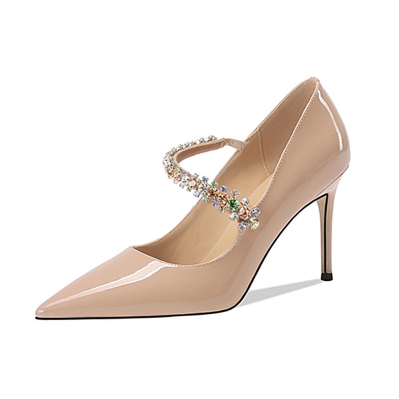 Spring And Summer Women's Shoes Pointed Toe Stiletto High Heels Metal Rhinestone Fashion Commuter Shoes Cow Patent Leather Single Shoes
