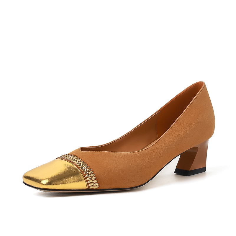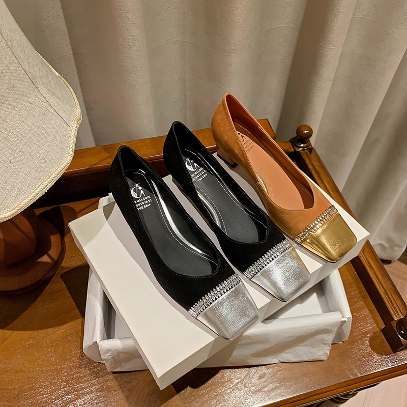 Fashion Square Head Rhinestone Thick Heel Color Matching High Heels For Women Spring Style Temperament Shallow Mouth Medium Heel Single Shoes