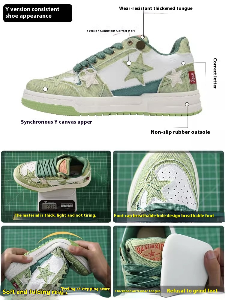 Che Che Co-branded Star Shoes Zhao Lusi National Women's Shoes Retro Avocado Green Thick-soled Shoesy Men