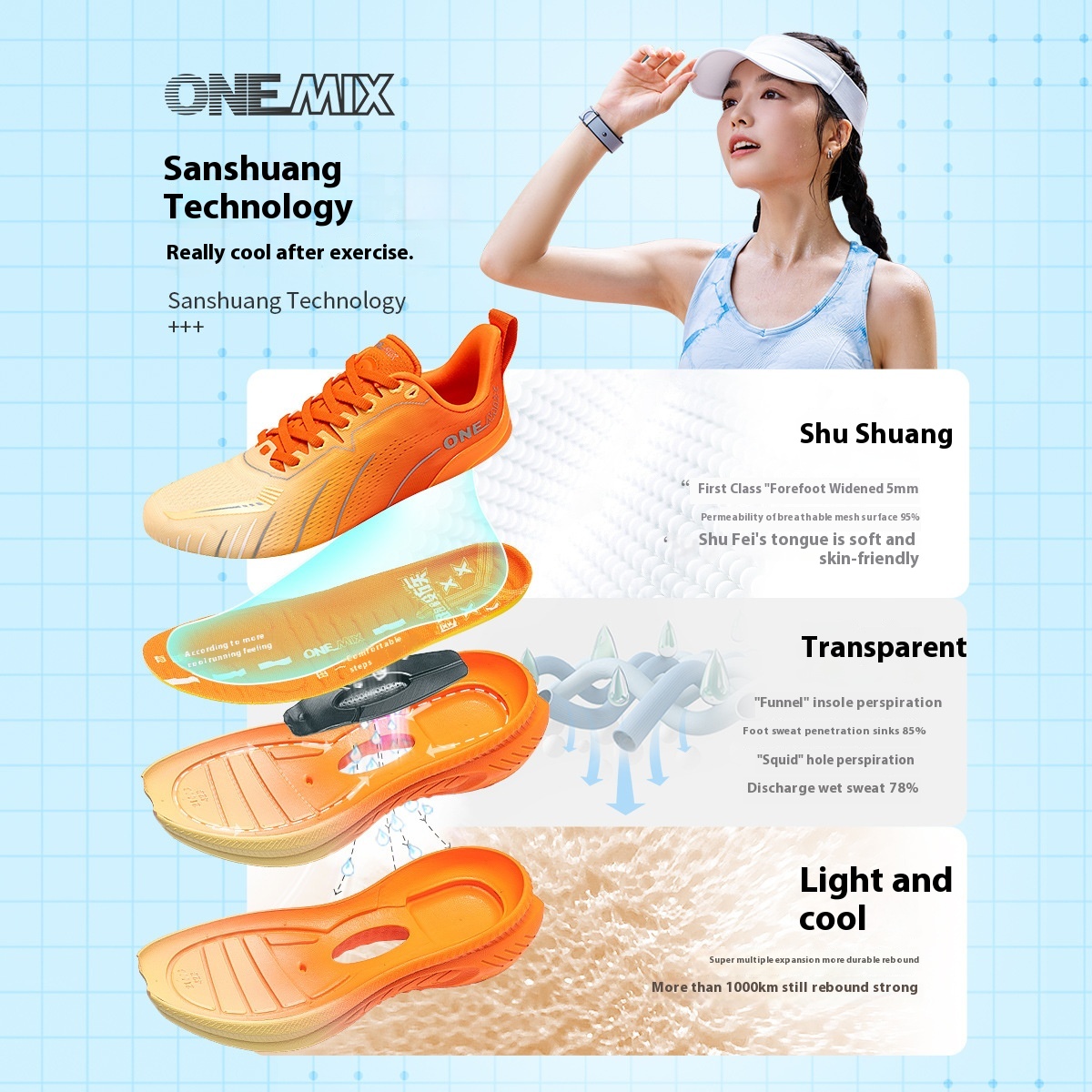 Onemix玩觅避震爽跑鞋专业跑步鞋运动厚底减震跑鞋男透气