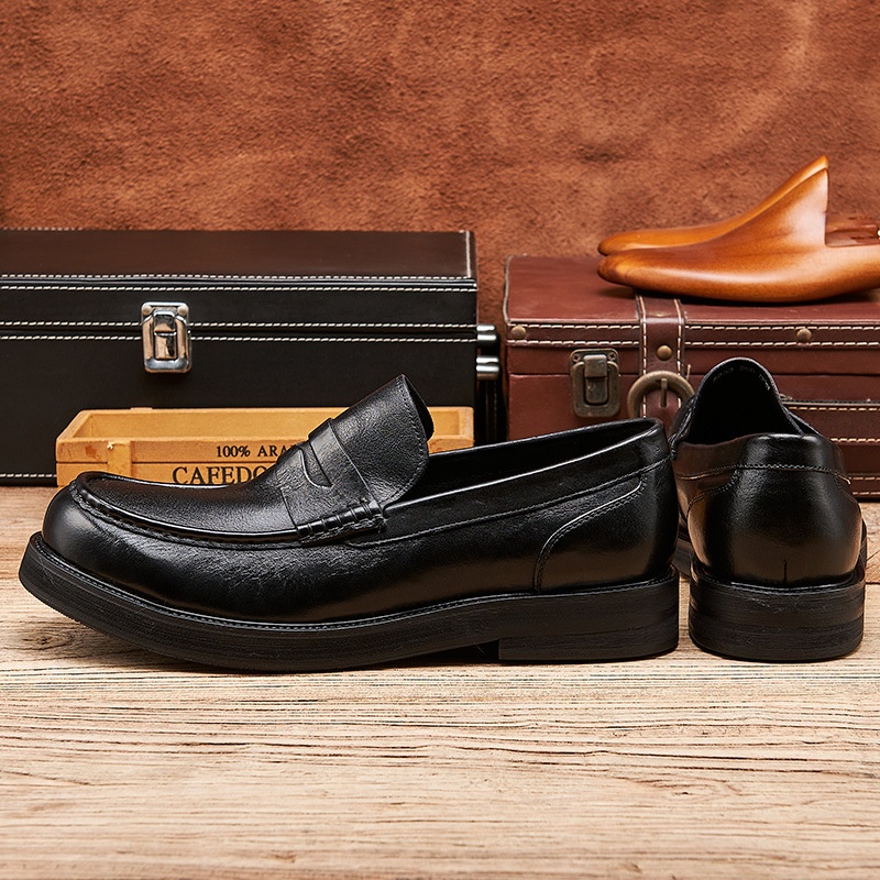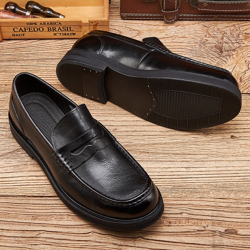 Breathable Slip-on Men's Shoes British Casual Slip-on Leather Shoes Versatile Thick-soled Black Lazy Loafers
