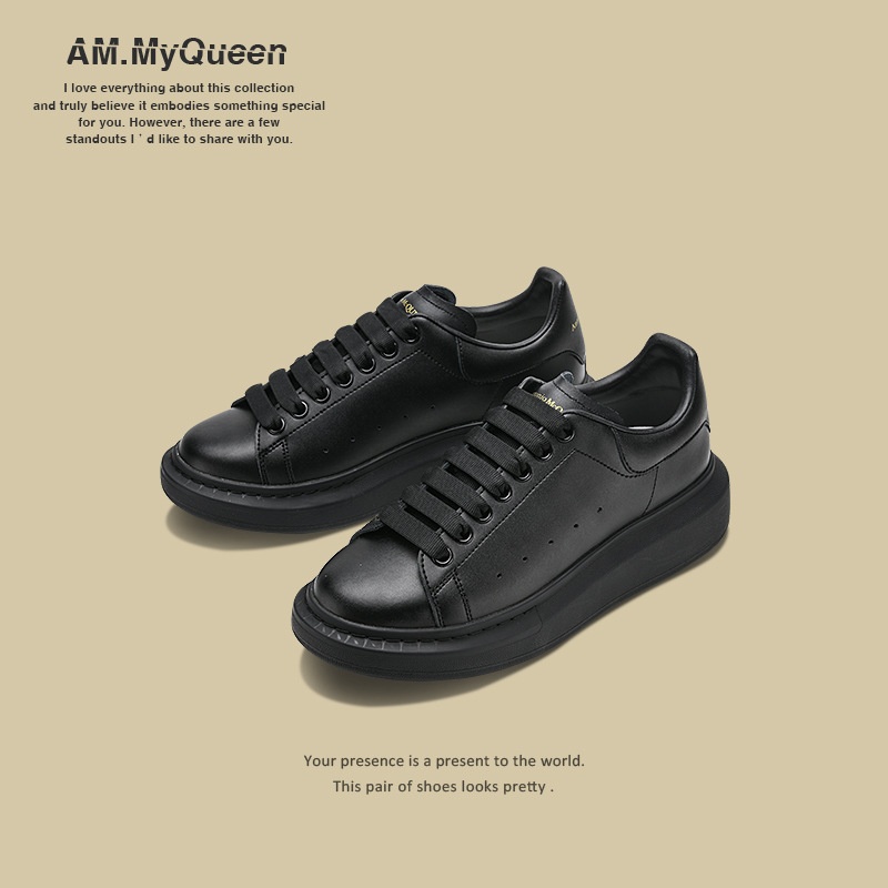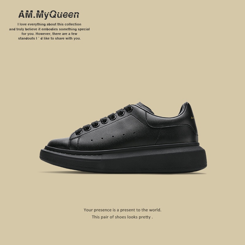 Genuine Leather Thick Sole Heightened Mc Queen White Shoes Men's Fashion Casual Versatile Sports Couple Shoes