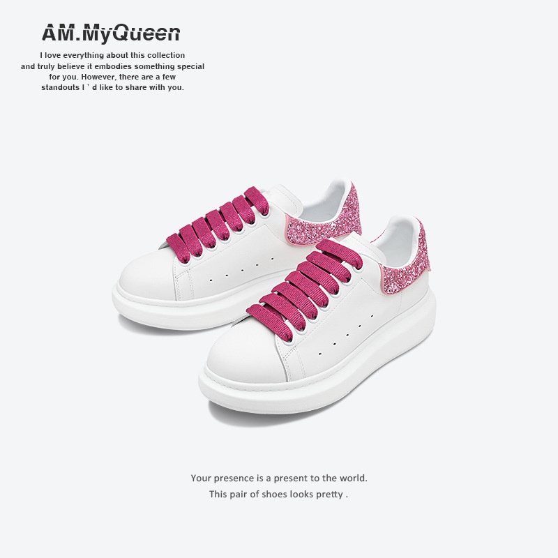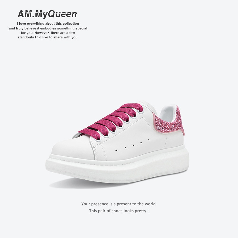Pink Tail Mc Queen White Shoes Fashionable And Simple Women's Sneakers Thick Bottom Genuine Leather Inner Heightening Sports All-match Shoes