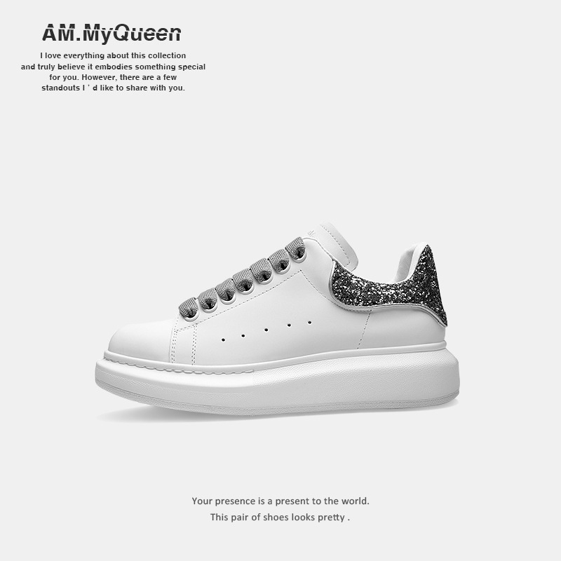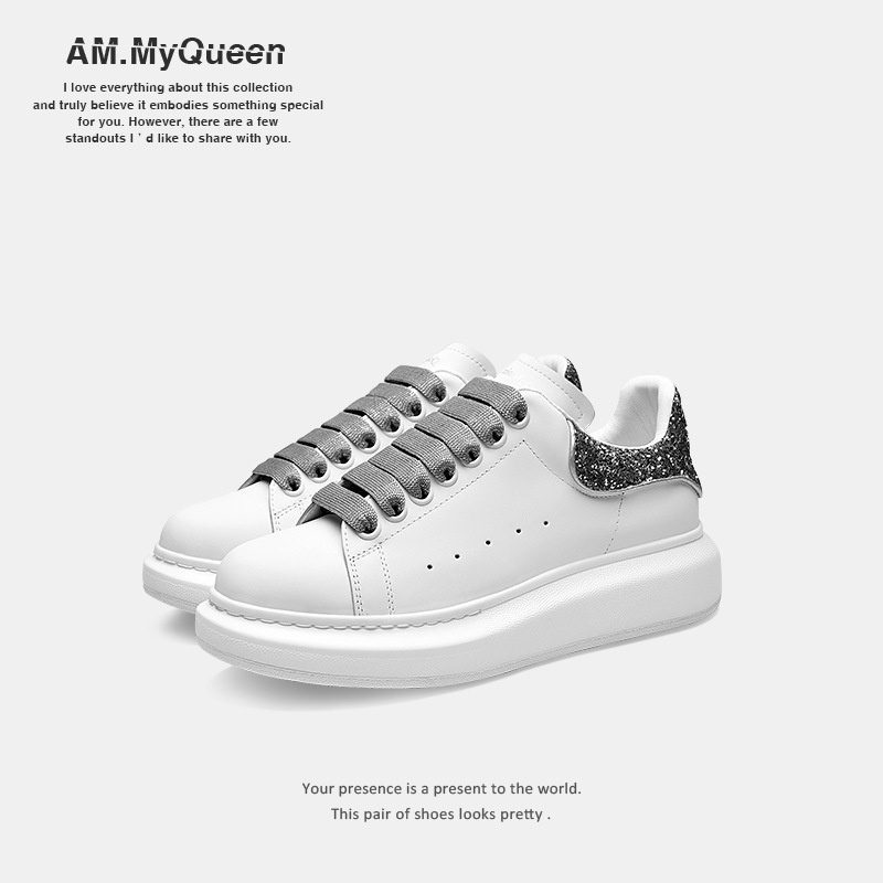Mc Queen White Shoes All-match Women's Shoes Genuine Leather Thick Sole Height-enhancing Sports Shoes Casual Shoes