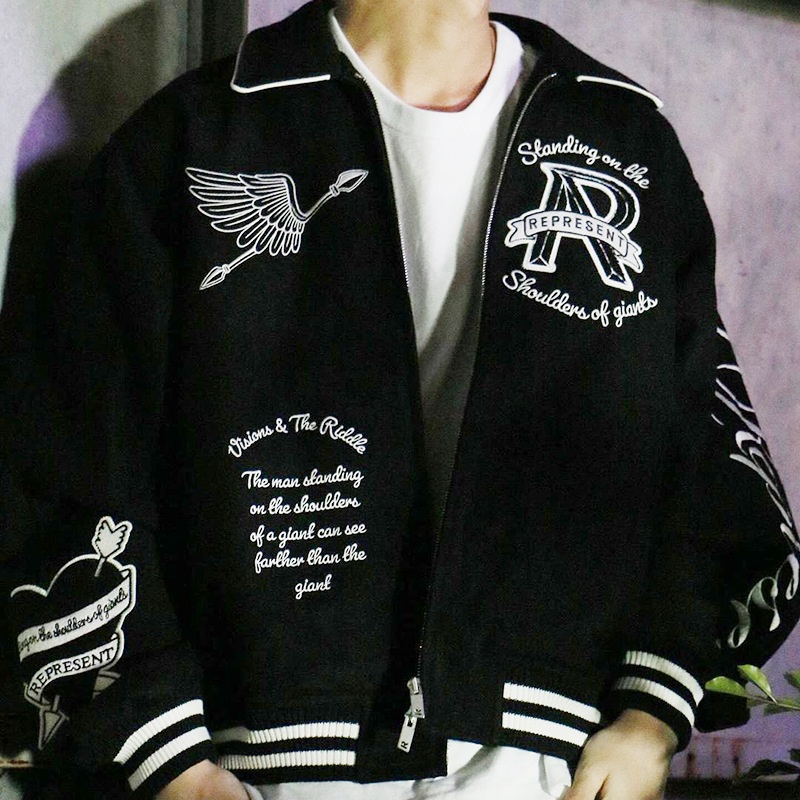 Represent Angel Embroidery American Retro High Street Lapel Jacket Coat Men's And Women's Loose Baseball Jacket