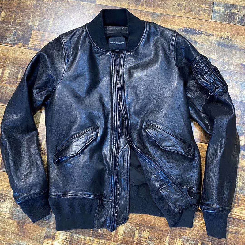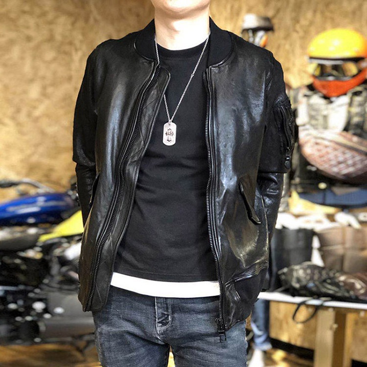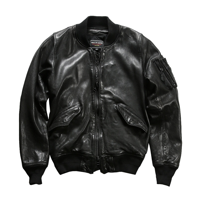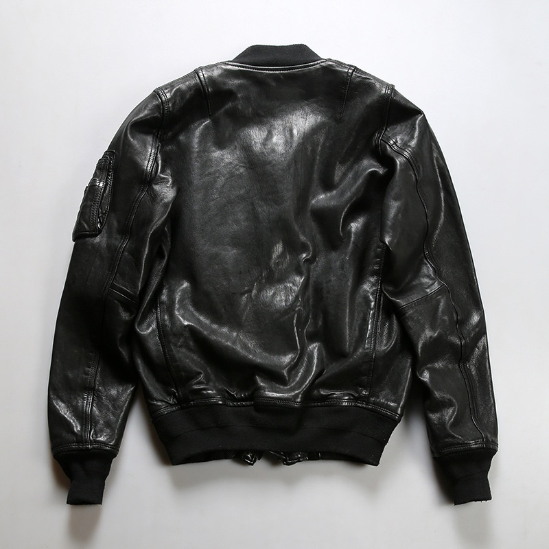 MA1 Jacket Genuine Leather Leather Men And Women Japanese Retro Washed Vegetable Tanned First Layer Sheepskin Baseball Jacket
