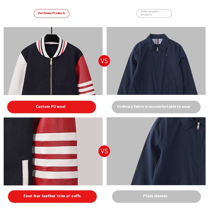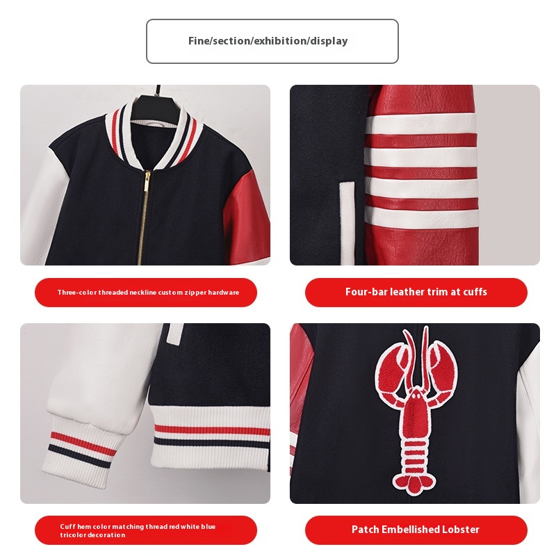 TBBROWINAutumn Striped Baseball Jacket Woolen Jacket Lobster Style Street Style Casual Jacket