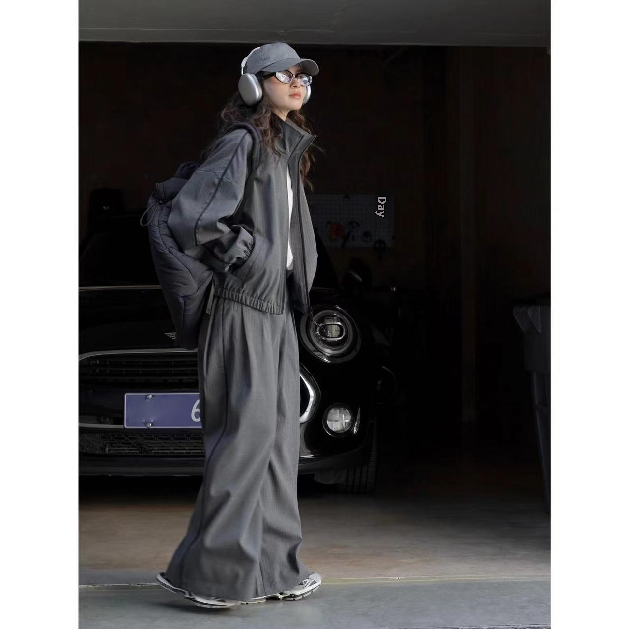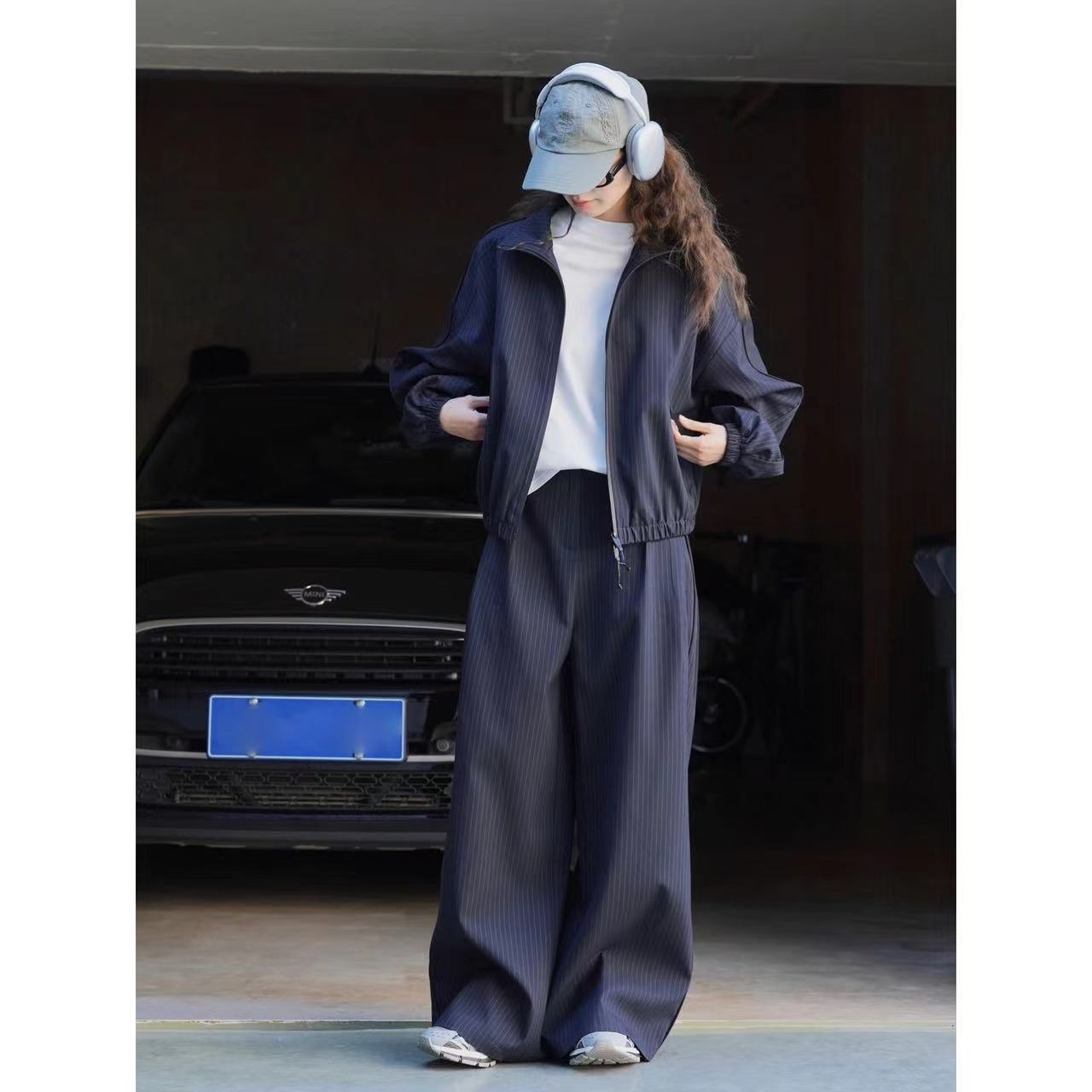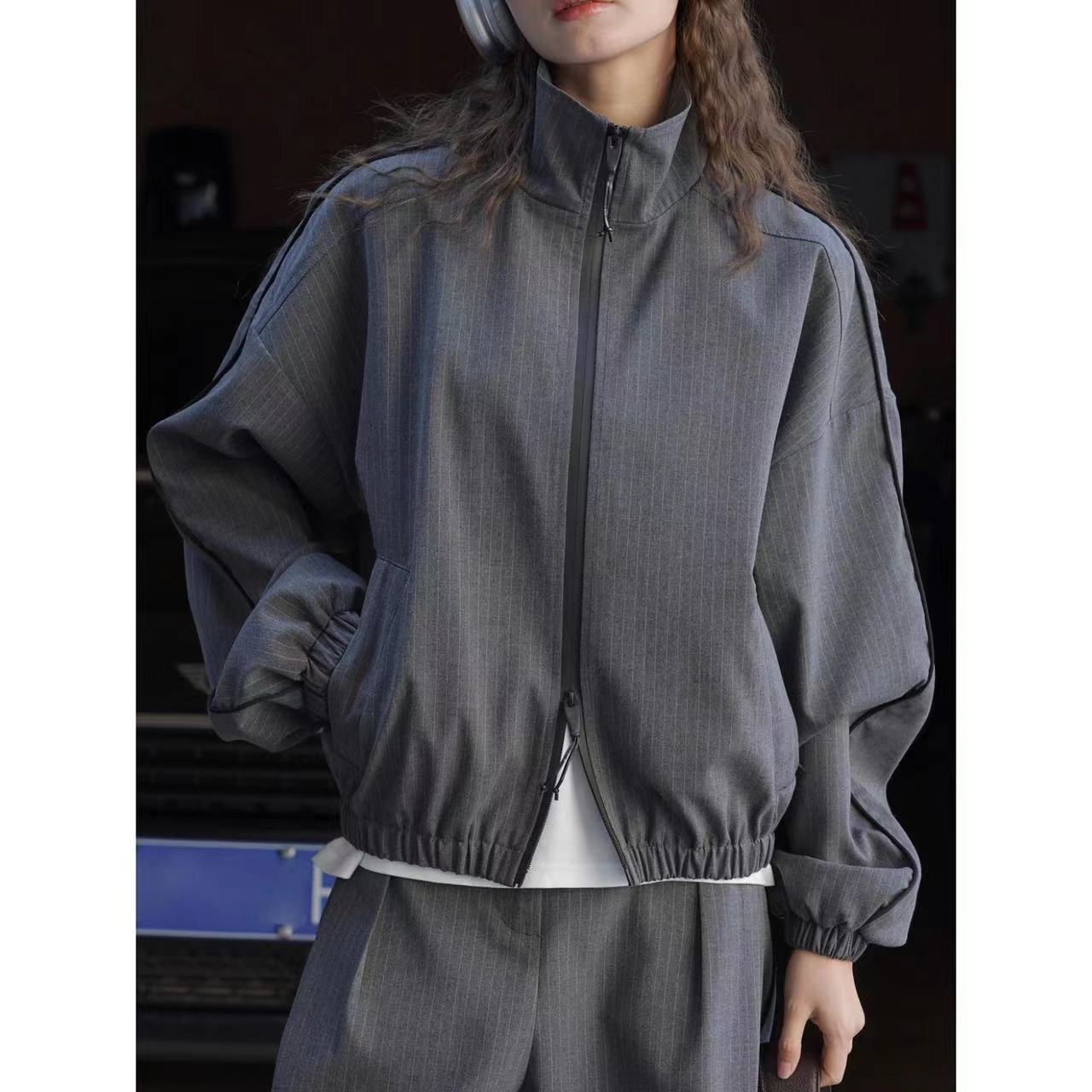 Louvre Spring Paris Fashion Casual Striped Zipper Jacket Stand Collar Crisp Loose Slimming Coat Women