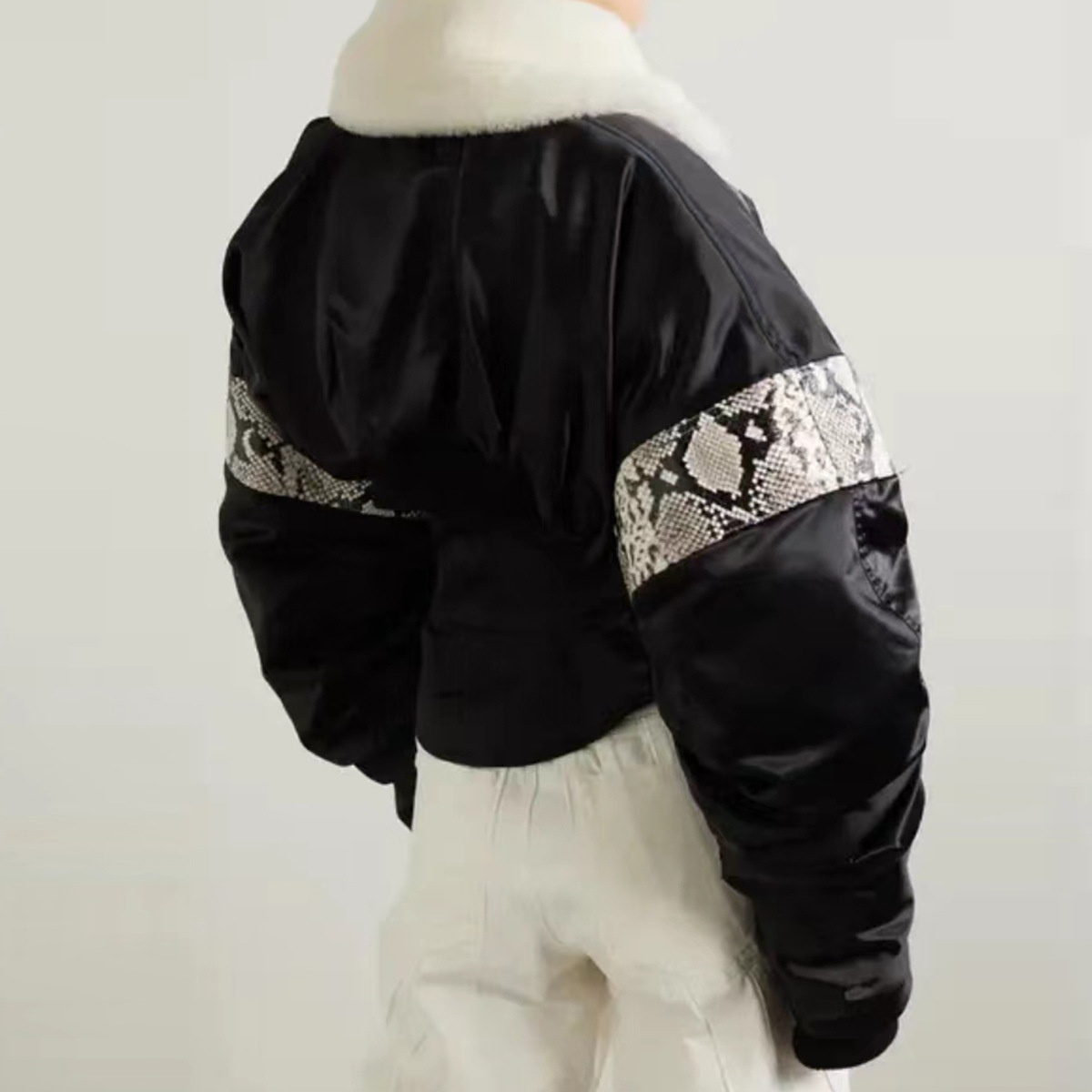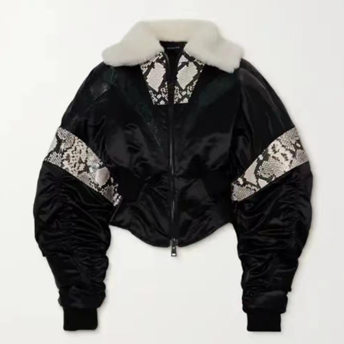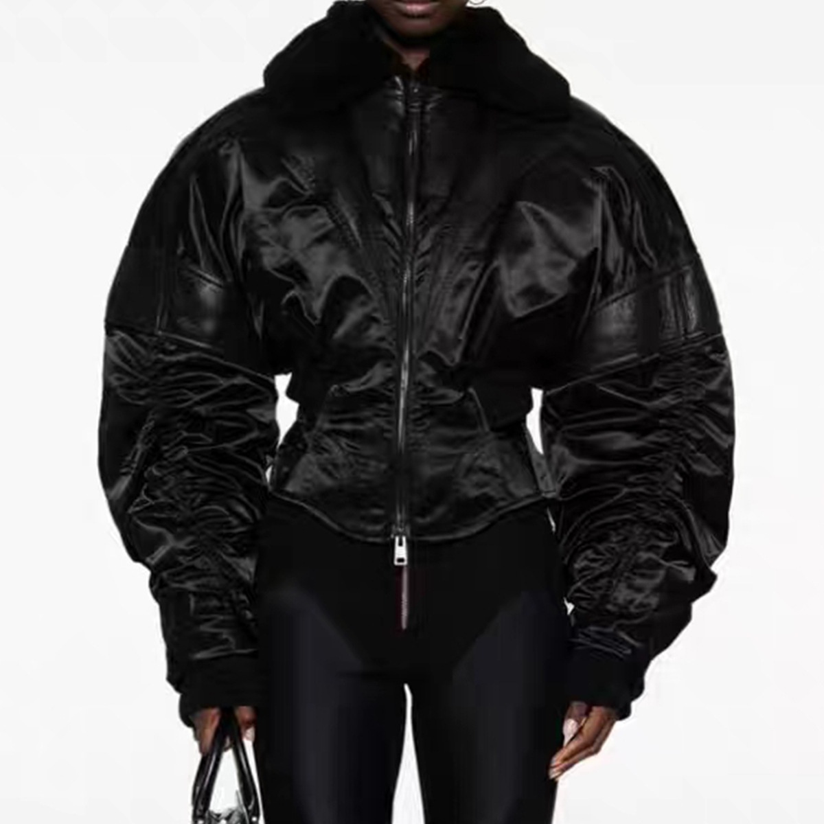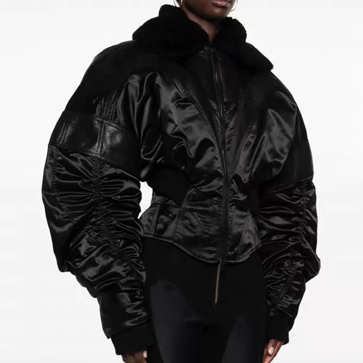 Nanyou Women's Clothing Muller Patchwork Design Corset Style Waist Bubble Long Sleeve Jacket Coat