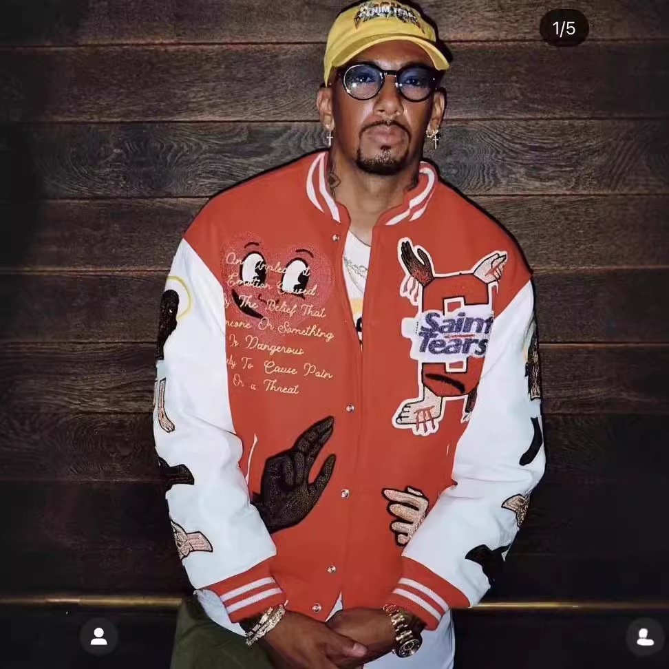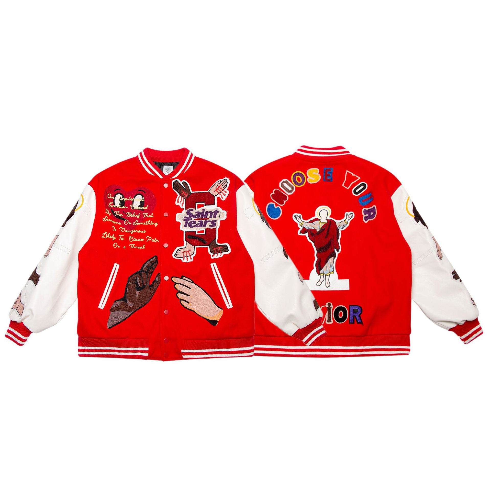 Saint Michael Bai Jingting Red Embroidered Patch Baseball Jacket American Casual Couple Jacket