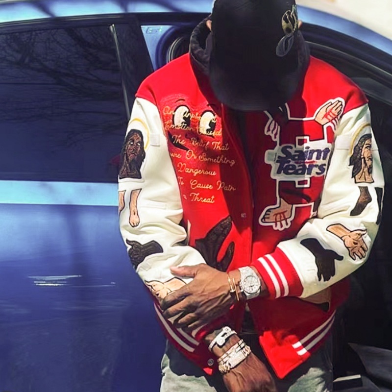 FOGVUJADESaint Michael Red Baseball Jacket Vibe Jacket Couple