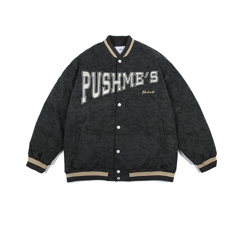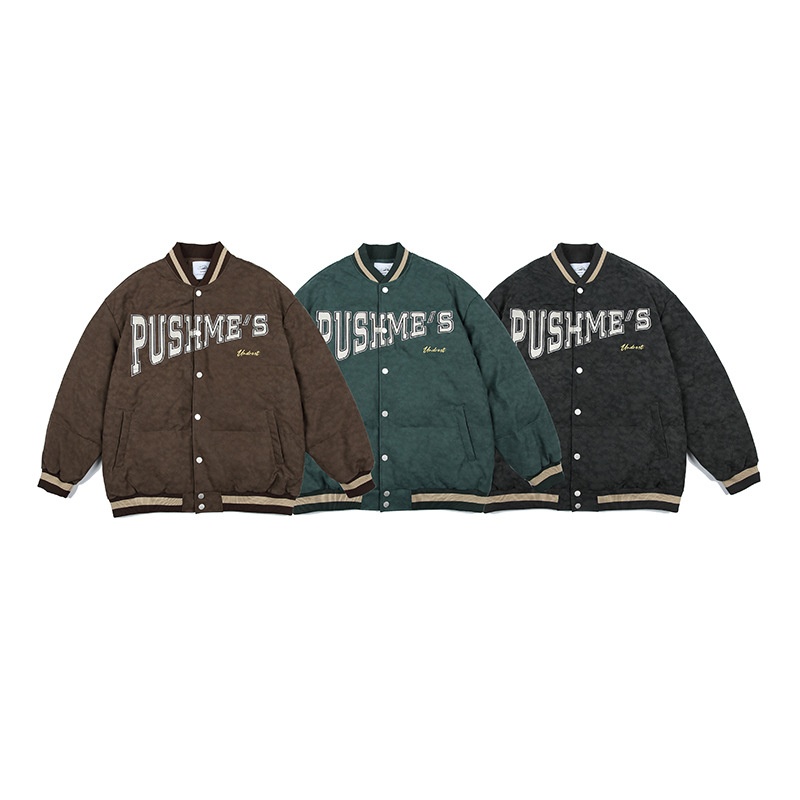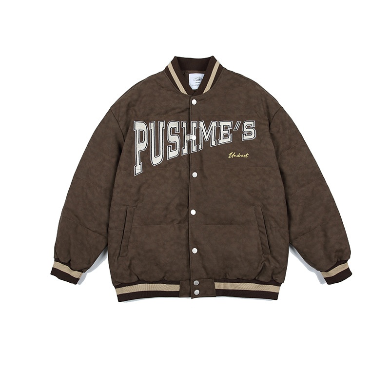 Nanxia Qiaozhuang Winter PUThree-Dimensional Embroidery Letters Baseball Jacket Cotton-padded Jacket Japanesey Youth Fashion Cotton-padded Jacket