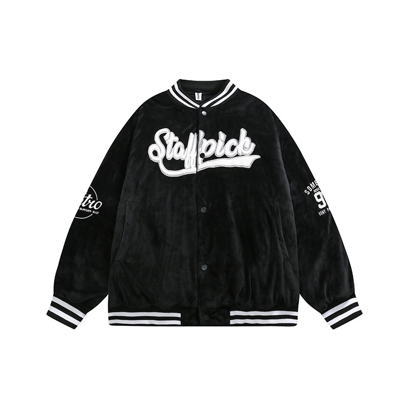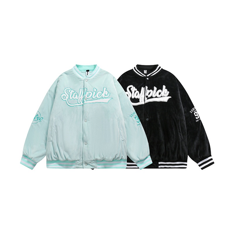 Nanxia Qiaozhuang Winter Embroidery Label Baseball Collar Cotton Coat Japanese Neutral Loose Stand Collar Cotton Coat