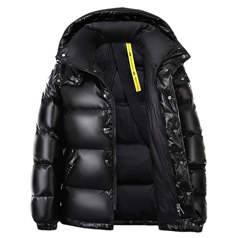 European Shiny Down Jacket Men's Short Wintery Couple Hooded Thick Warm Jacket