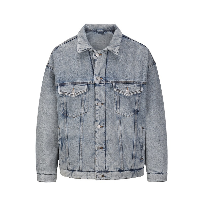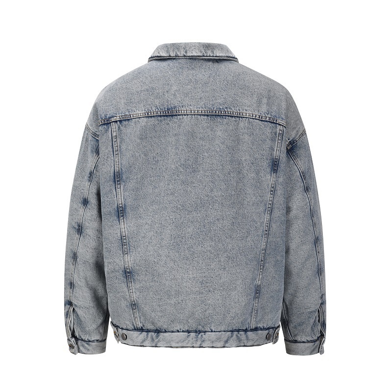 KANYEKanye's Same Autumn And Winter Denim Quilted Jacket Loose Distressed Casual Retro Warm Cotton Jacket Men