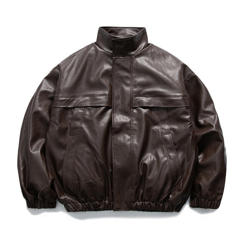GUYEMen's Clothing Japanese Fashion Brand Spring Retro Jacket Loose-leaf Casual PULeather Jacket
