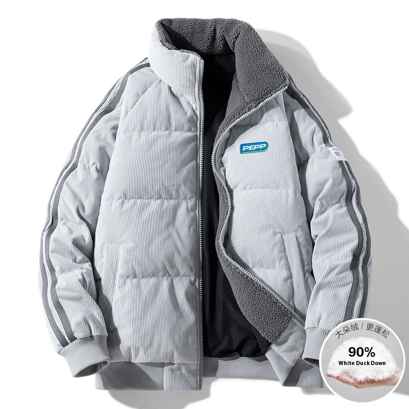 Corduroy Down Jacket Men's Autumn And Winter Plus Velvet Thickened Winter Weary Couple Bread Coat Jacket