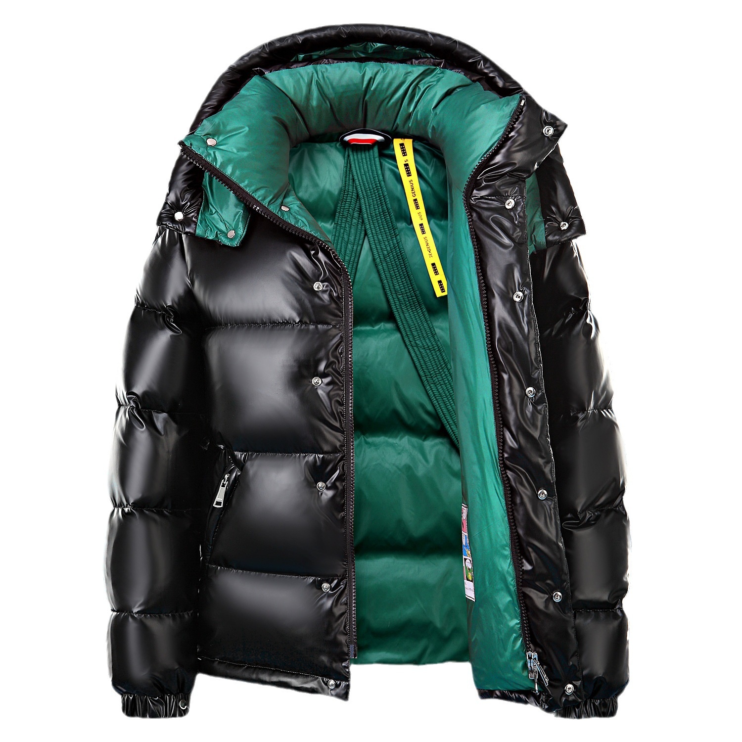 Down Jacket Men's Short Shiny Handsome Thick Warm Coupley Hooded Jacket