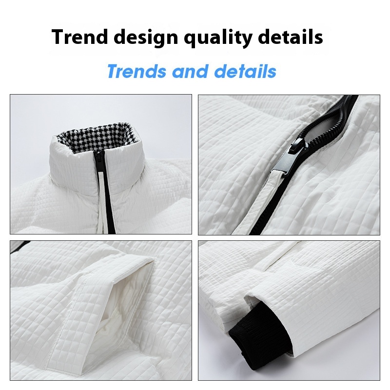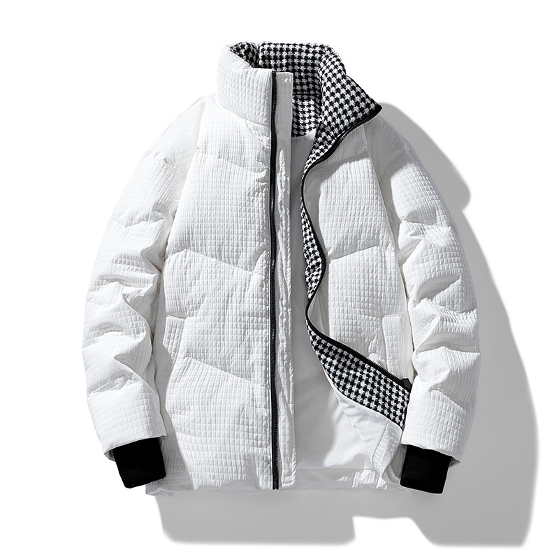Winter Men's Fashion Brand Checkerboard American Thickened Stand Collar Contrast Color Down Jacket Casual Warm Jacket Men's Clothing