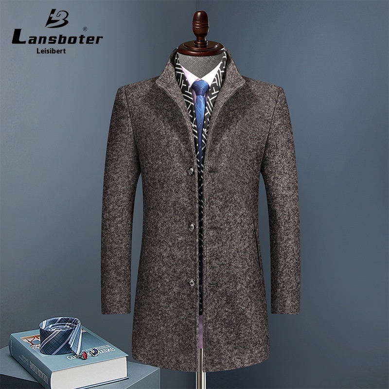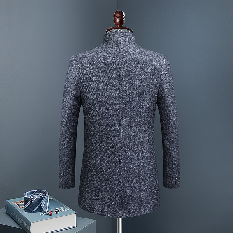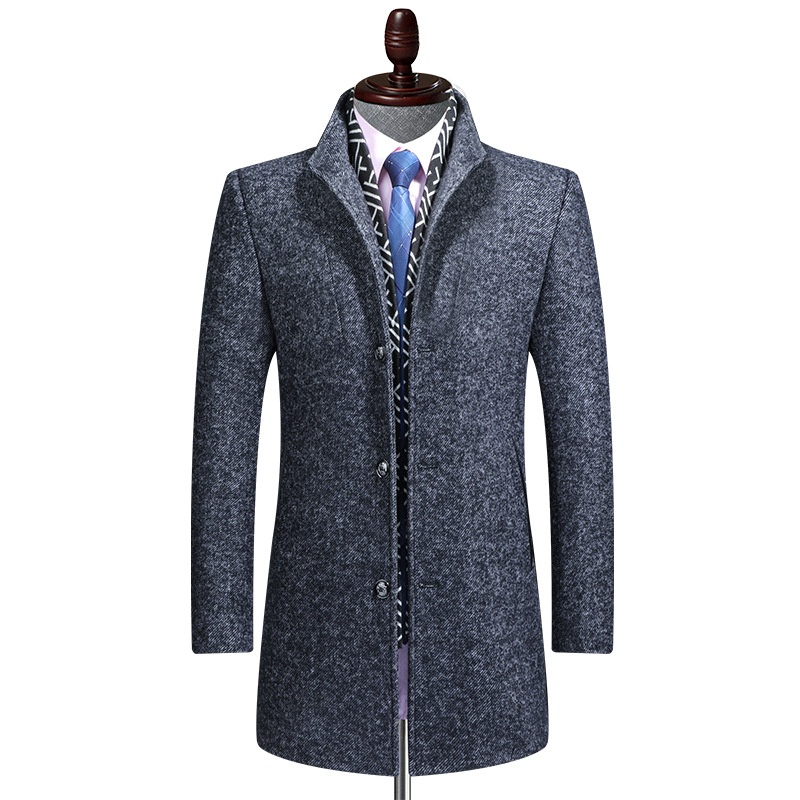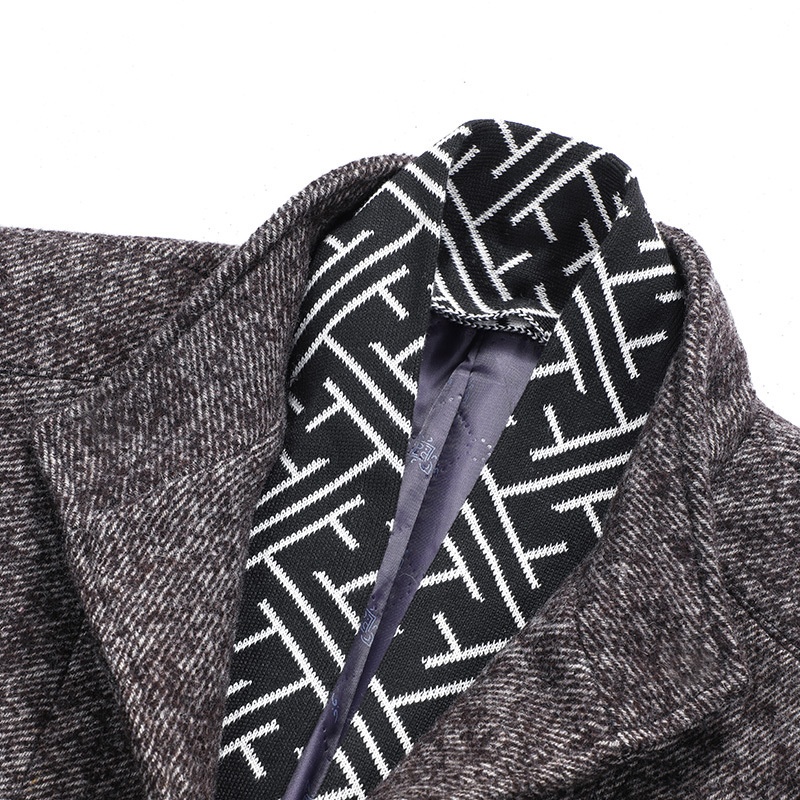 Winter Wool Tweed Coat Men Thick Medium Long Scarf Collar Men's Business Windbreaker Coat